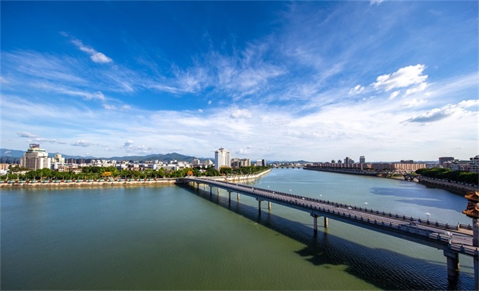 長沙圩鎮碧道鋪設了瀝青并劃分跑道和自行車道,“顏值”再獲提升。(林翔?攝)位于梅江河圩鎮段碧道沿線的紅色休閑廣場效果....